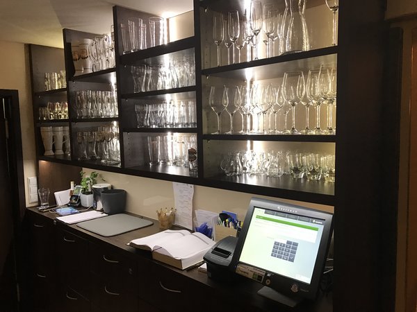 Einsatz als SB-Kassensystem bei Bedienung an der Theke mit Geldschubladen und Kundendisplay.